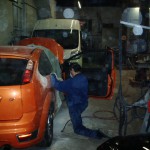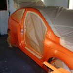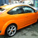 This car body repair, on a Ford Focus, was completed for a Stockport customer. Repairs were first made to the side of the vehicle and sanded down.