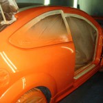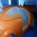 For a perfect colour finish, ground coats were applied, to match the car’s candy colour, and base coats applied. A lacquer top coat was applied and low baked in the spay booth, then all trim parts were also colour coded for an exact match.